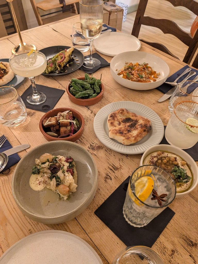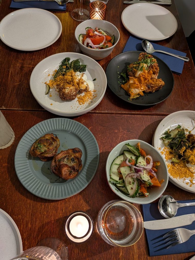Our menu is designed to be shared. All the flavours of the different dishes complement each other and we recommend a selection of 3-4 dishes per person, including snacks and desserts. Food will be served as it's ready from the kitchen so you can taste them in a relaxed and cozy atmosphere. We have a great selection of cocktails and wine to pair with the different flavours of the food.